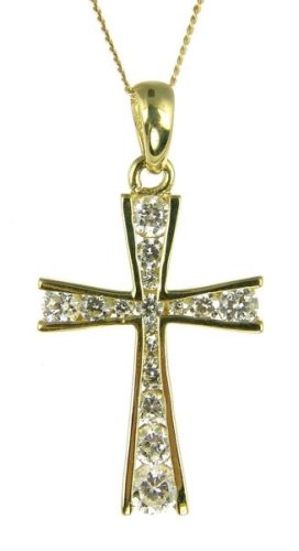 9ct Yellow Gold Ladies' Cubic Zirconia Set Cross on 46cm Curb Chain