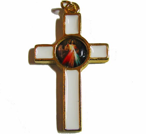 Catholic Rosary cross crucifix with the Divine Mercy image - white 36mm
